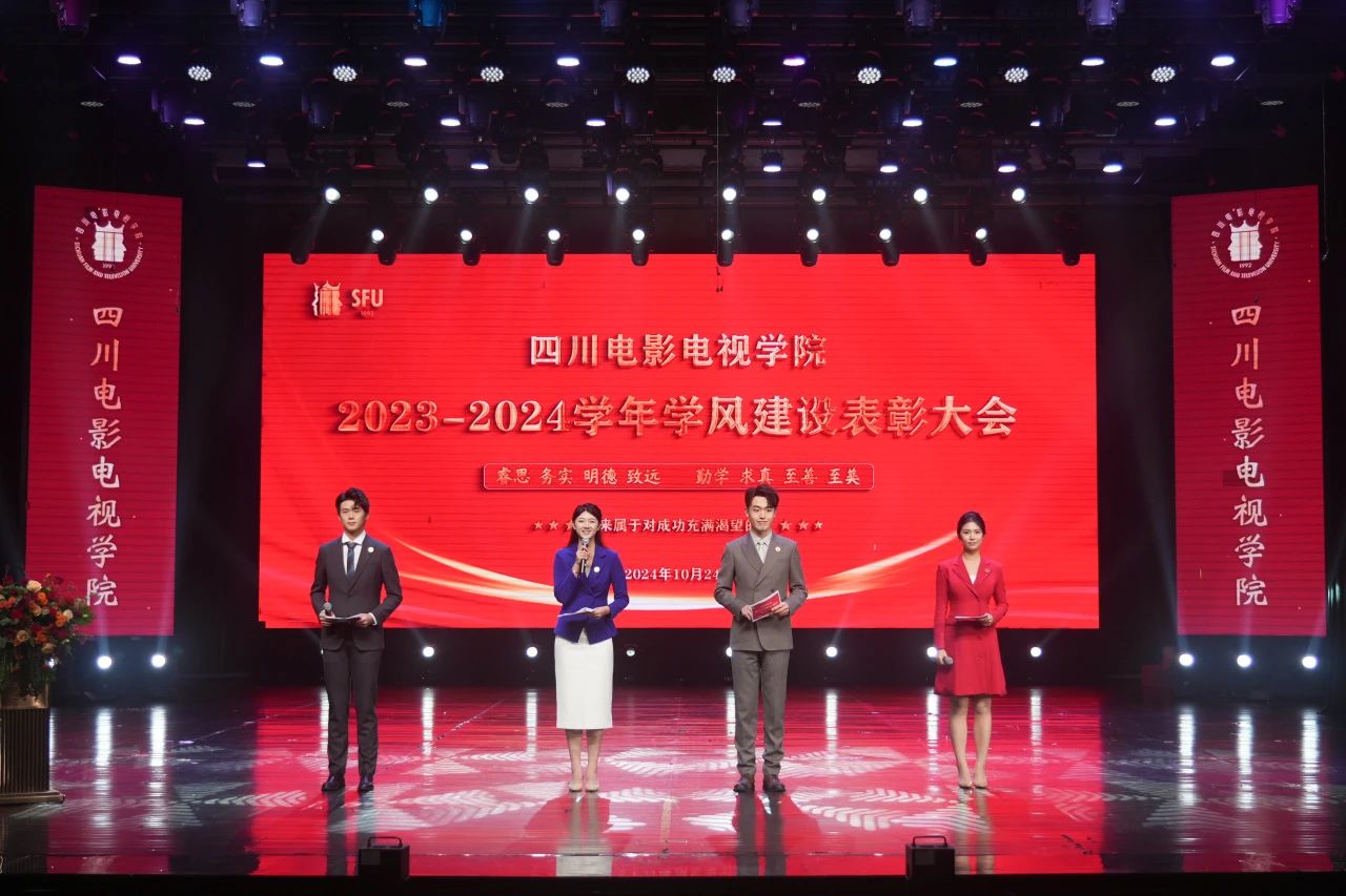10月24日晚,四川电影电视学院2023-2024学年学风建设表彰大会在安仁校区贡院大剧院举行,表彰先进、交流经验,积极营造“睿思务实 明德致远”“勤学求真 至善至美”的优良校风、学风。