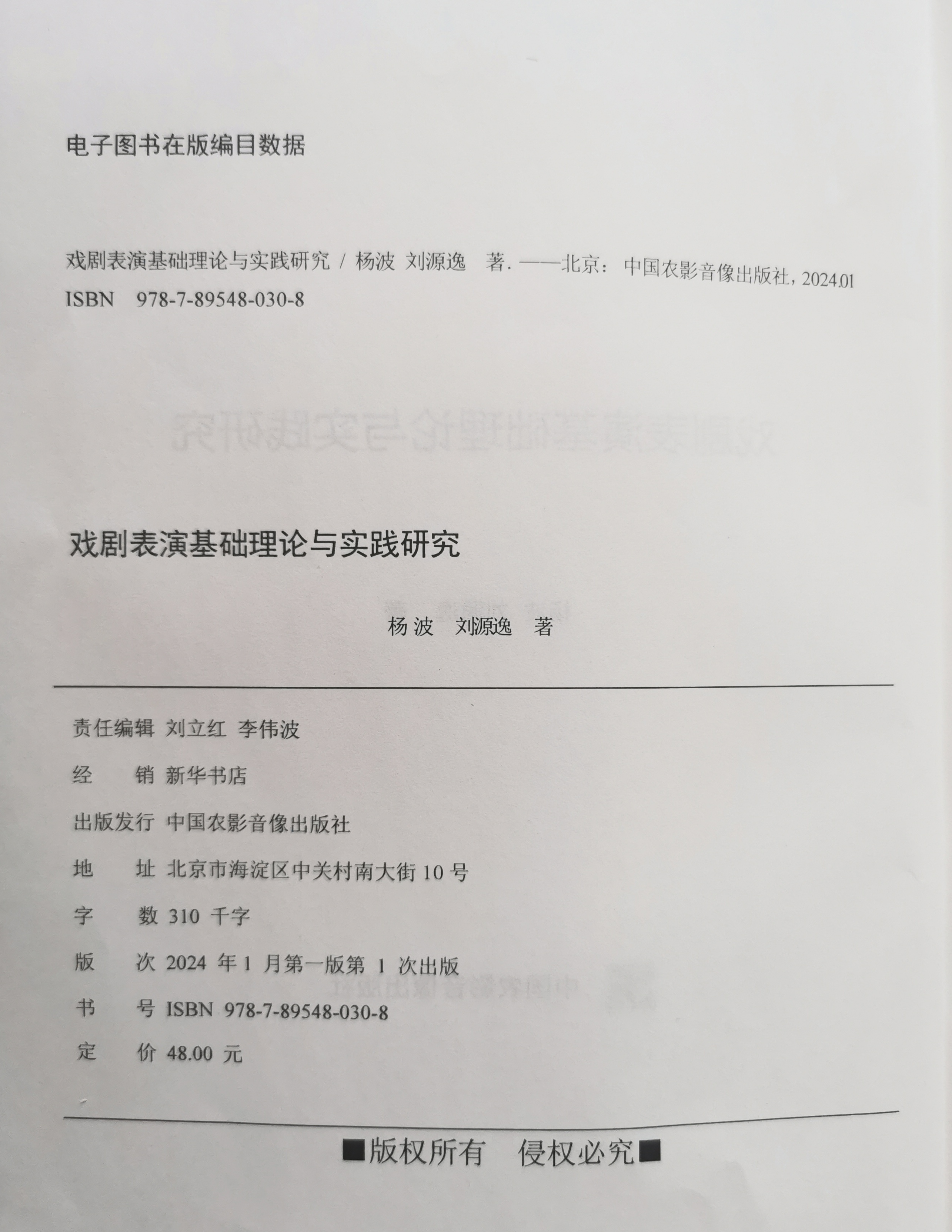 近日,我校电影学院表演系主任、博士杨波副教授联合表演系老师刘源逸博士共同撰写的专著《戏剧表演基础理论与实践研究》由中国农影音像出版社出版,该专著分为戏剧表演基础概述、演员的基本素养与技能、剧本分析与演绎技巧、戏剧表演的艺术要素、戏剧表演中的演员的身体与声音、戏剧排练与演出流程、戏剧评论与批评、戏剧教育与培训、戏剧跨文化表演与国际交流、未来戏剧表演的发展趋势共十章57节31万字。