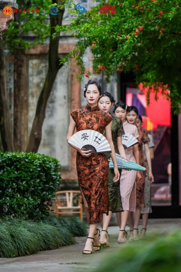经典的旗袍设计蕴藏着时代密码,以安仁公馆建筑群为天然T台,同学们漫步于安仁古镇,仿佛在进行一场跨越百年的文化对话。流动的东方美学在百年建筑间绽放新韵,青砖灰瓦的轮廓与旗袍的典雅线条交相辉映,同学们以出众的气质、从容的台风,演绎出传统与现代交融的时代新貌。