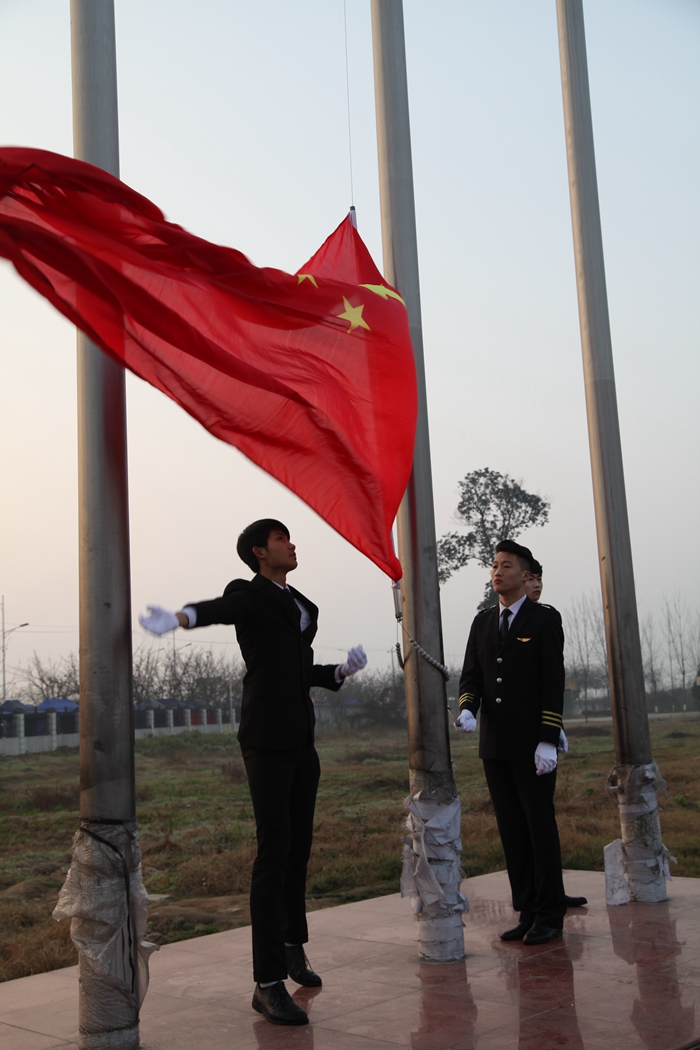 早上8点,一轮朝日冉冉升起,金色的光芒洒满大地,整个校园呈现出一派生机盎然的景象。参加升国旗仪式的师生们早早来到操场,站着整齐的队形,满怀激情迎接升旗仪式的开始。随着刘国富主任宣布:升国旗仪式开始,国旗护卫队员英姿飒爽,迈着矫健的步伐护卫着五星红旗走向升旗台。当嘹亮的国歌声响起,鲜艳的五星红旗,伴着朝霞,沐浴着晨风,在阳光下升起时,全体师生员工庄严的向五星红旗行注目礼,祝愿我们的祖国更加繁荣昌盛,祝愿我们的学院更加辉煌!