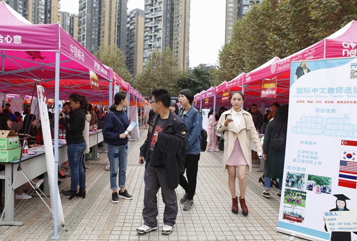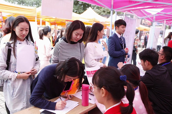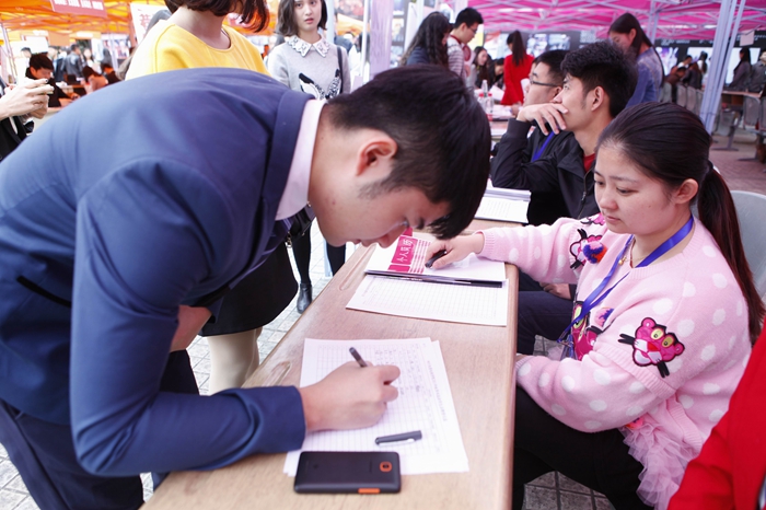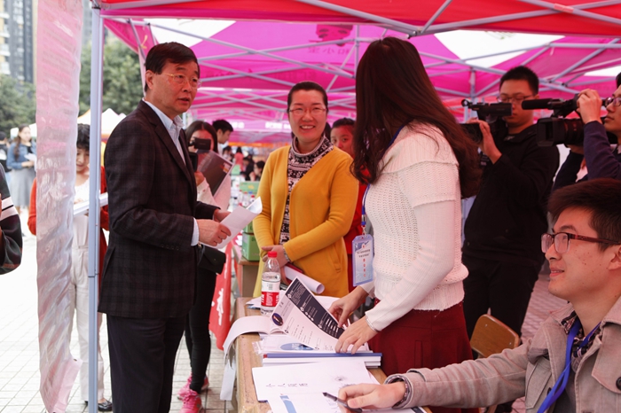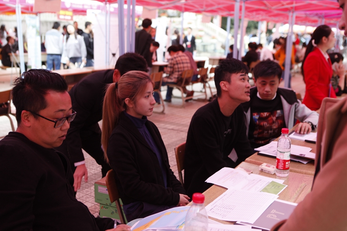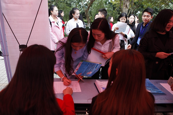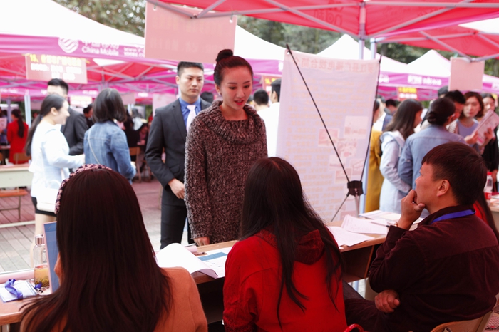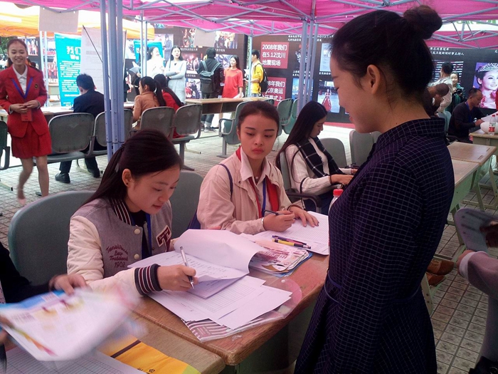 此外,现场还看到川影自己的毕业生创业后回母校招聘的情况,成都市中传之星艺术培训学校代表说:“当时我有创业的想法,罗院长就鼓励我去付诸行动,没想到现在做得还不错。自己母校的情况是最熟悉的,我们这次主要招播音、编导教师,需要这些不光是专业强,还得有责任心,具备服务意识的毕业生。”