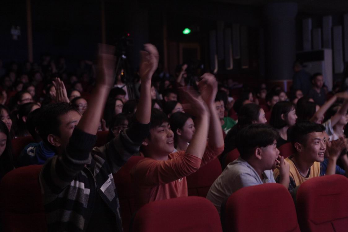 校园歌手演唱《会有那么一天》动人的歌声让人着迷,学生们挡不住歌手们的热情随之歌唱,阵阵掌声不断回响。