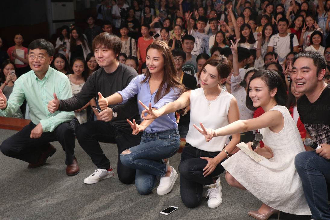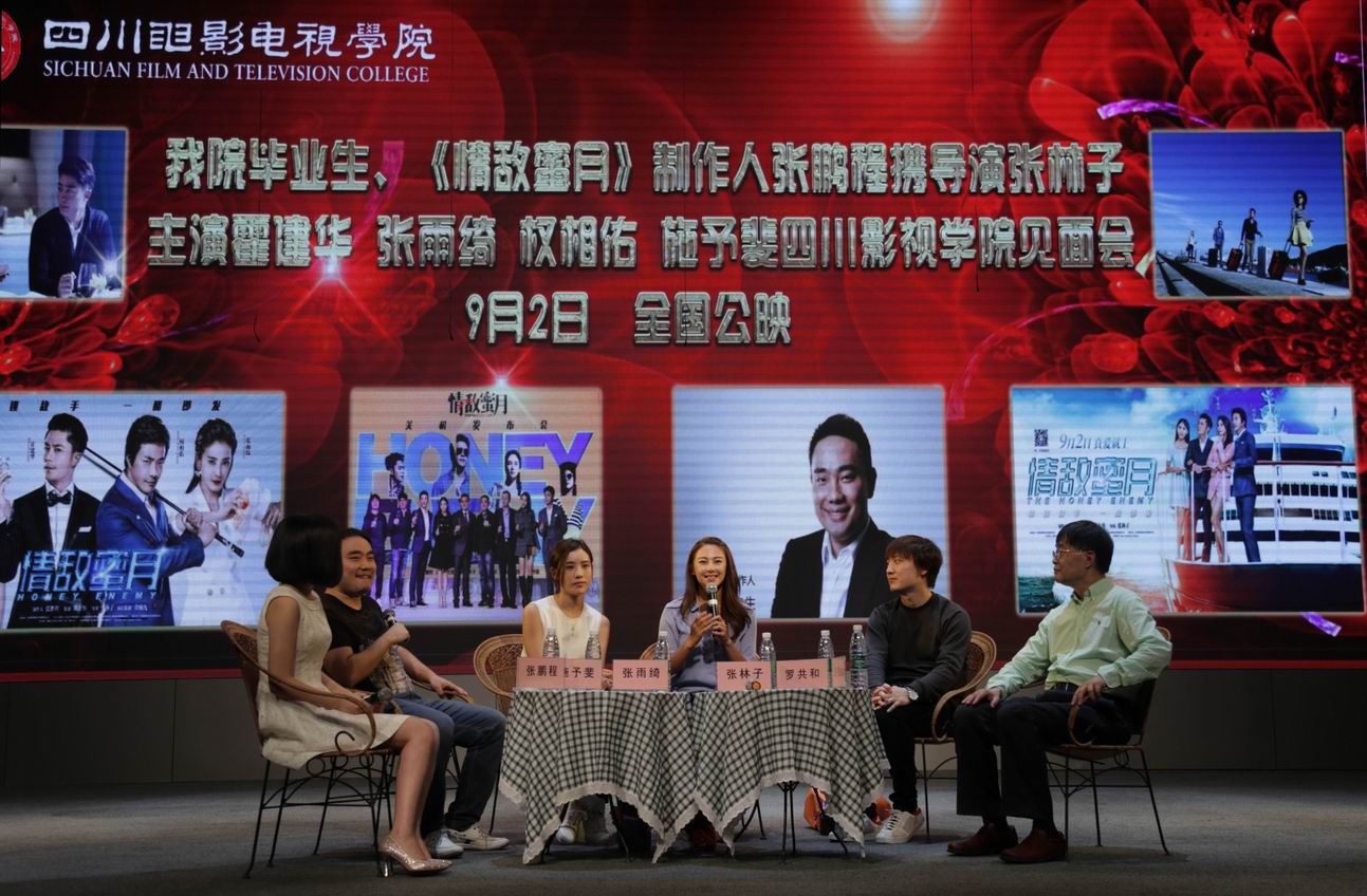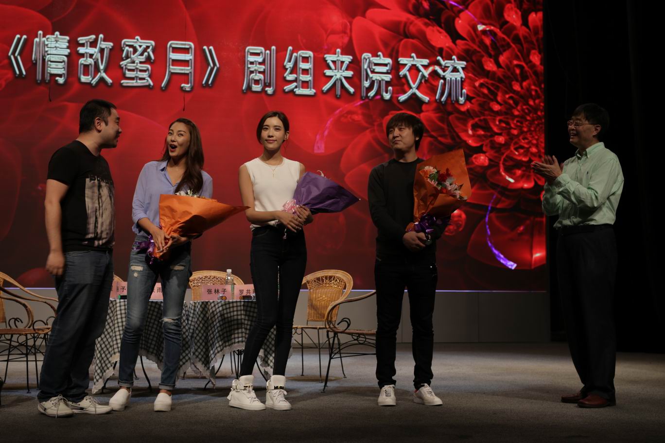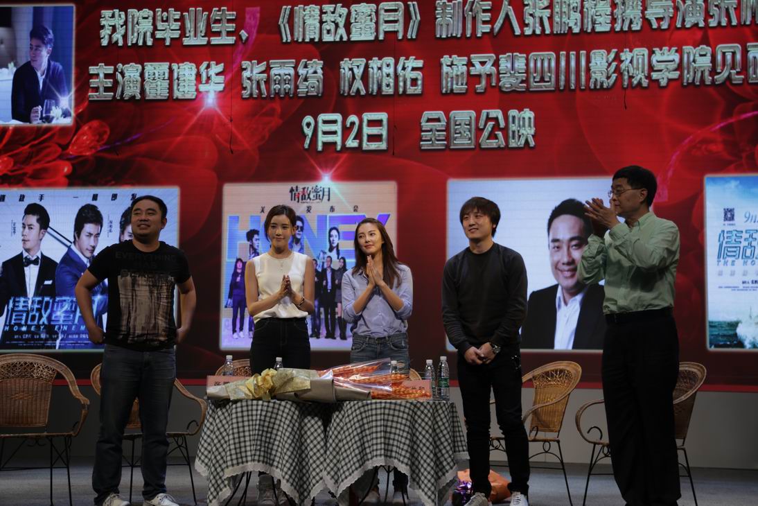 见面会上,院长罗共和代表学院表示将大力支持鹏程师哥的作品,祝福《情敌蜜月》票房大卖,鹏程师哥更是向罗院长深情鞠躬,感谢学院栽培。川影学生以极高的热情欢迎《情敌蜜月》剧组,并展开交流。当问及如何直面电影市场激烈的竞争,鹏程师哥回应,品质是首位,坚持兴趣,考量什么是适合做的,认真做好自己所想。学生提问“女神”张雨绮怎样确认表演风格?如何把握票房?雨绮优雅地回应,希望尝试不同演出风格,女性电影已成为风潮,没有担心过票房。问及与霍建华搭戏的感受,施予斐表示,他是“尊上”,也是暖男。