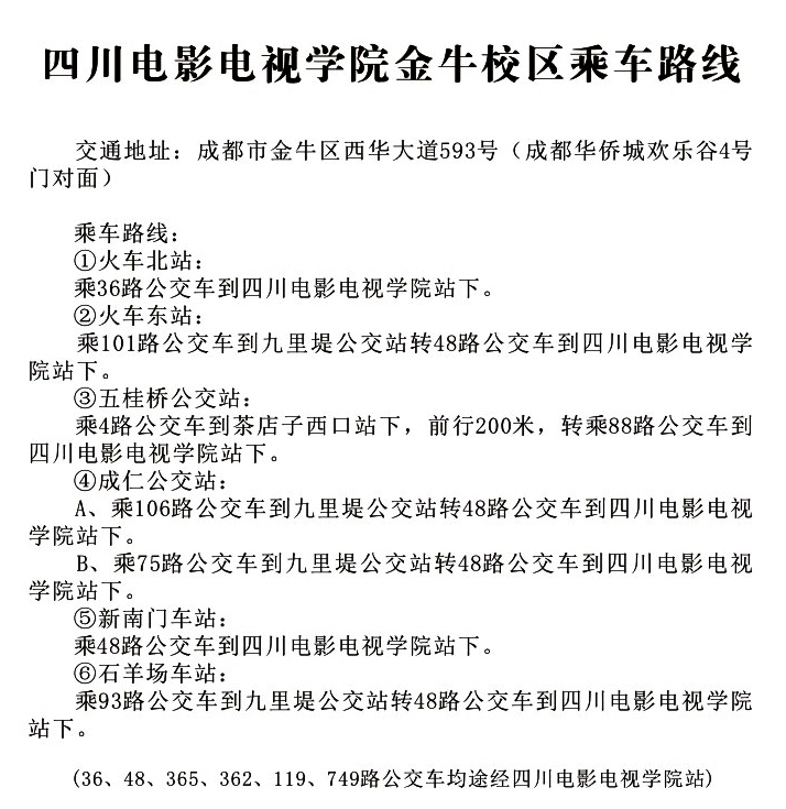 地点:四川电影电视学院金牛校区(成都市金牛区西华大道593号,成都市华侨城欢乐谷4号门对面)