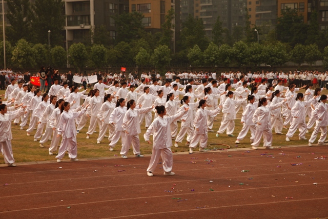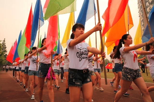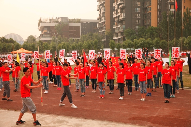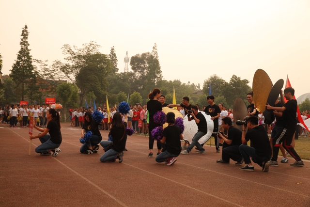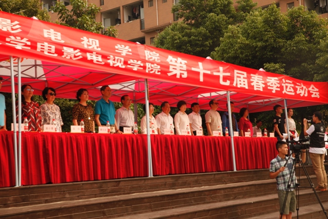 4月30日,学院第17届春季运动会在学院运动场拉开序幕。副院长黄元文、党委书记罗映光及各系处领导出席了开幕式,程坚处长主持开幕仪式。入场式上,由12级戏文四班所组成的彩旗队昂首阔步率先入场,紧随其后的教师队伍更是热情洋溢。肩负重要责任裁判员方队严肃冷静,步伐坚定。各班级方队独具特色,14导1和14表演艺术班方阵的舞蹈给人们留下了深刻的印象。入场式结束后,全体人员奏唱国歌,罗书记致开幕词,裁判长和运动员代表分别宣誓,王海龄副处长宣布获得“最佳风貌奖”的班级。随后,黄院长宣布本次运动会正式开幕。在各项比赛正式开始前,学院2013级同学们为大家奉献了精彩的团体操表演。团体操表演结束后,比赛正式开始。本次运动会共设有乒乓球迎面接力赛和踢毽子比赛两项教职工趣味项目,以及男子100米、200米、女子50米、100米比赛和男女混合4x100、15x50迎面接力赛。经过激烈的比赛,各项比赛绝出了冠、亚、季军。