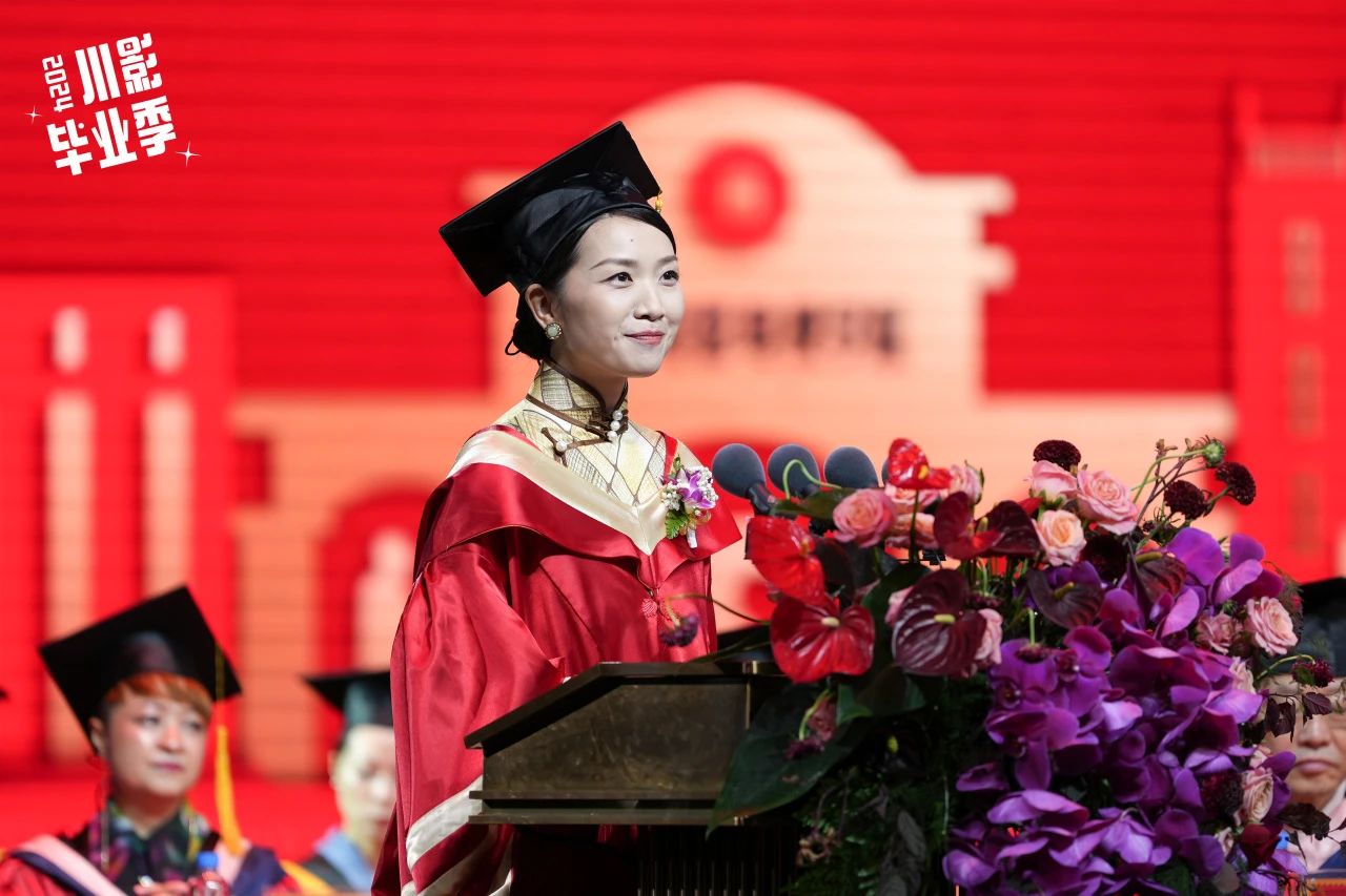 “你们在川影度过了大学时光,这里收获了知识,结交了朋友,积累了珍贵的回忆。恭喜你们,毕业了。”校长、党委副书记罗思教授代表学校向圆满完成学业,开启人生新篇章的毕业生们送上最衷心的祝福。在离别之际,罗思校长以三句话寄语毕业生们:渴望成功,用你的方式去定义成功,川影人有能量定义我们的人生;接受不确定性,允许更多的尝试和变化,学会规划人生,也允许停顿和脆弱;无论遇见什么,要相信相信的力量,要知道在生命中,爱与善意会战胜一切。