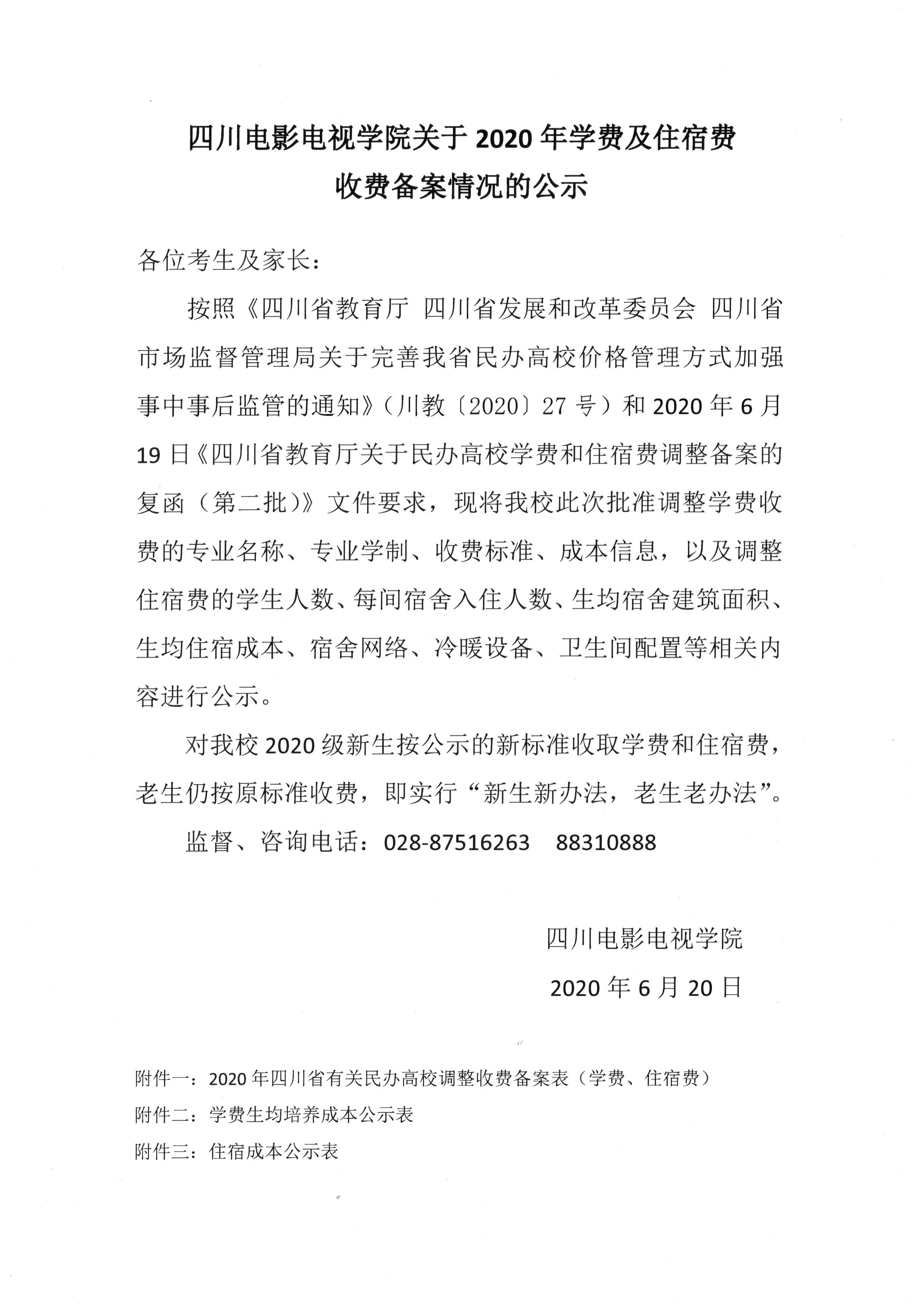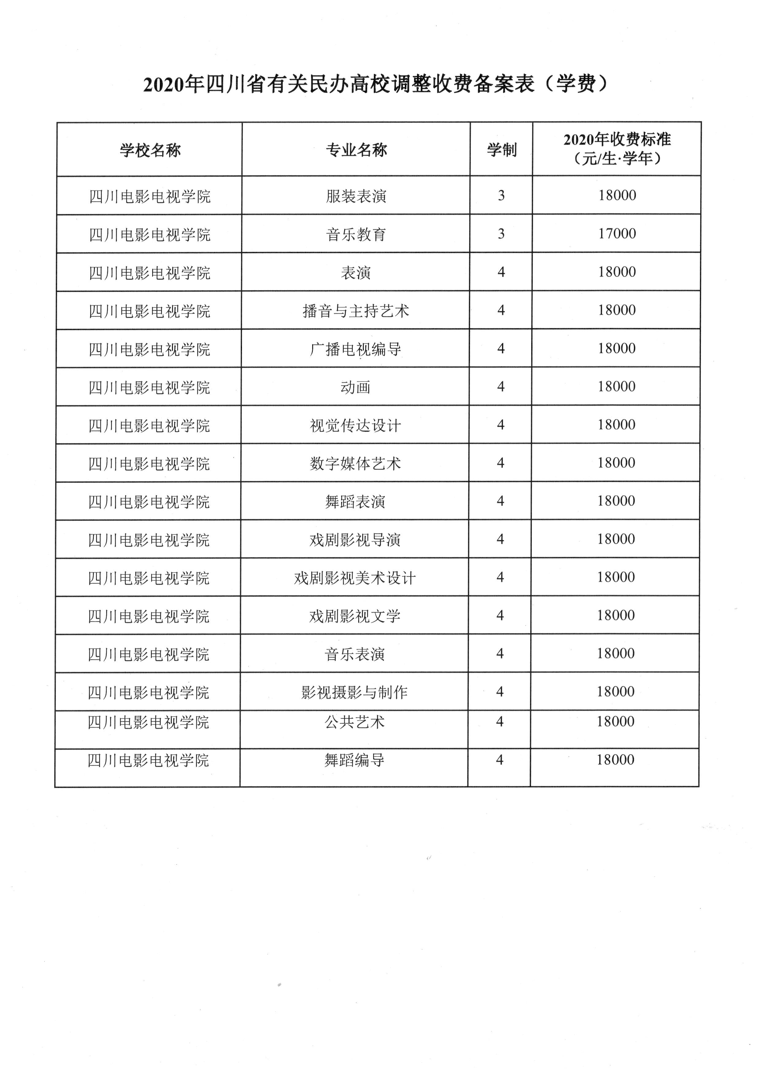 四川电影电视学院关于2020年学费及住宿费收费备案情况的公示