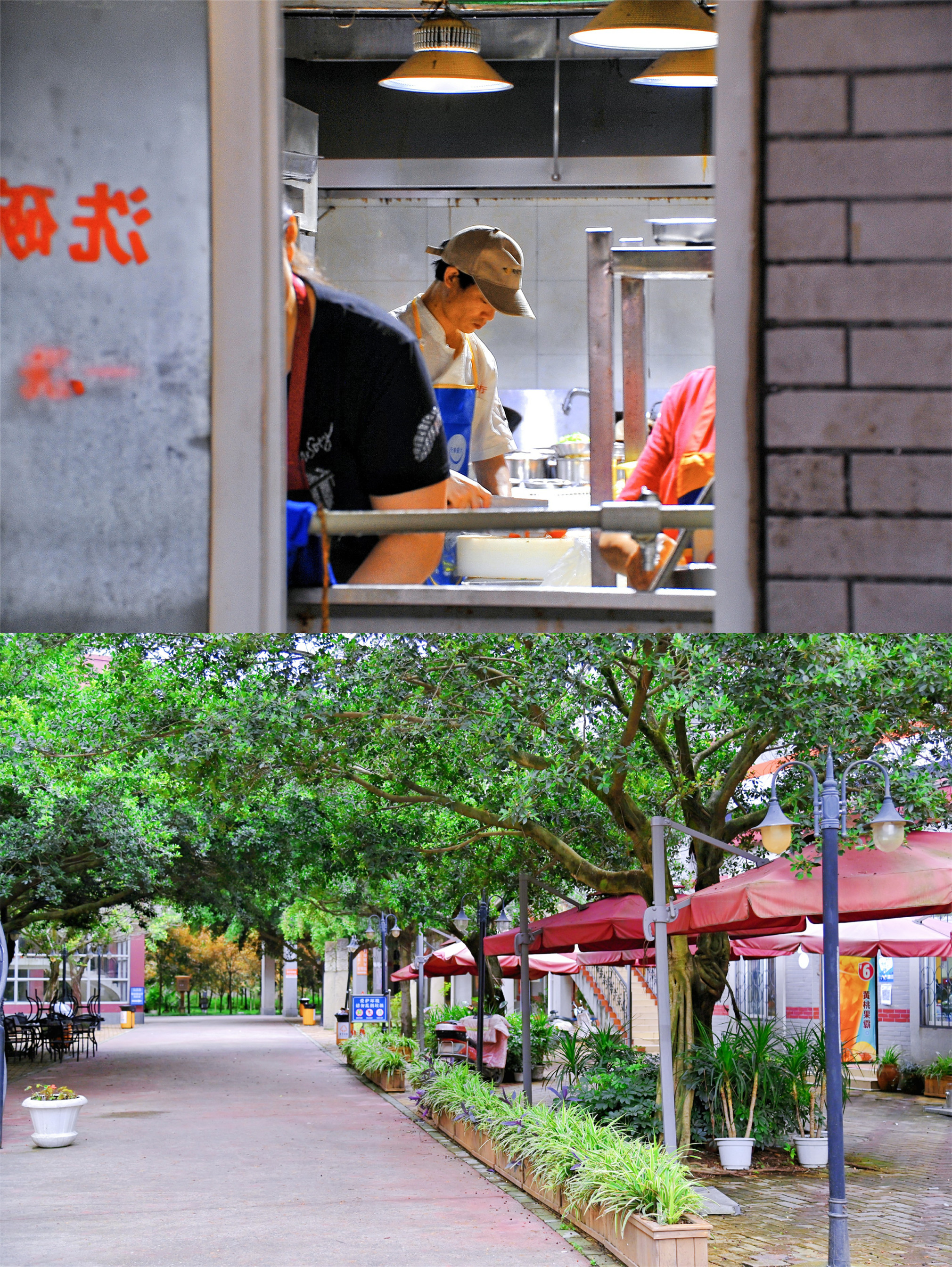 除了食堂,商业街餐厅里的厨师们也在精心打造美食,正午时分的校园弥漫着浓浓的烟火气,这里也成为了同学们惬意放松的休闲地带。