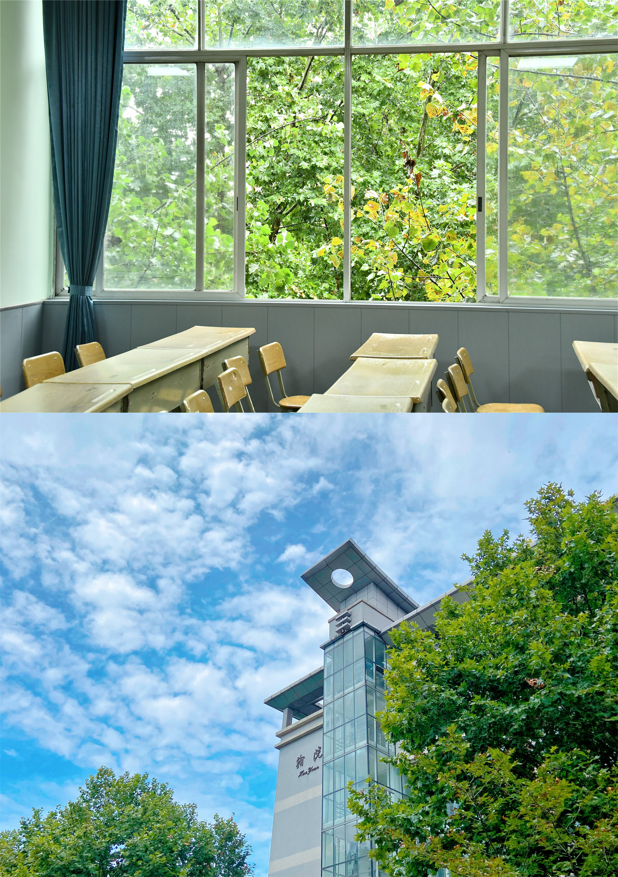 翰院窗外绿意盎然,阳光正好,舒适宁静的校园环境可以让同学们心无旁骛地投身于专业学习。