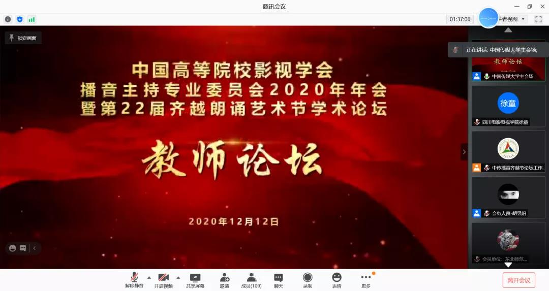 除论坛外,由我院选送的两部朗诵作品《人间正道是沧桑》和《我们的青春》,亦进入第22届齐越朗诵艺术节暨全国大学生朗诵大会展映环节,展现了我院师生在理论研究和专业实践方面的良好风貌。