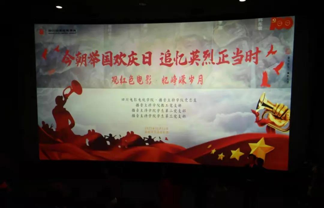 今年是中国共产党成立100周年,全党开展党史学习教育。为推进相关工作走深走实,四川电影电视学院播音主持学院党总支举办主题党日活动。2021年10月14日,播音主持学院教工党支部、播音主持学院学生第二党支部、播音主持学院学生第三党支部的老师同学共同观看了红色电影《长津湖》。