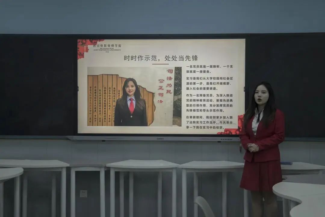 3月21日晚,四川电影电视学院播音主持学院,以“小我融入大我,青春献给祖国”为主题的寒假社会实践报告分享会初赛在翰院204举行。