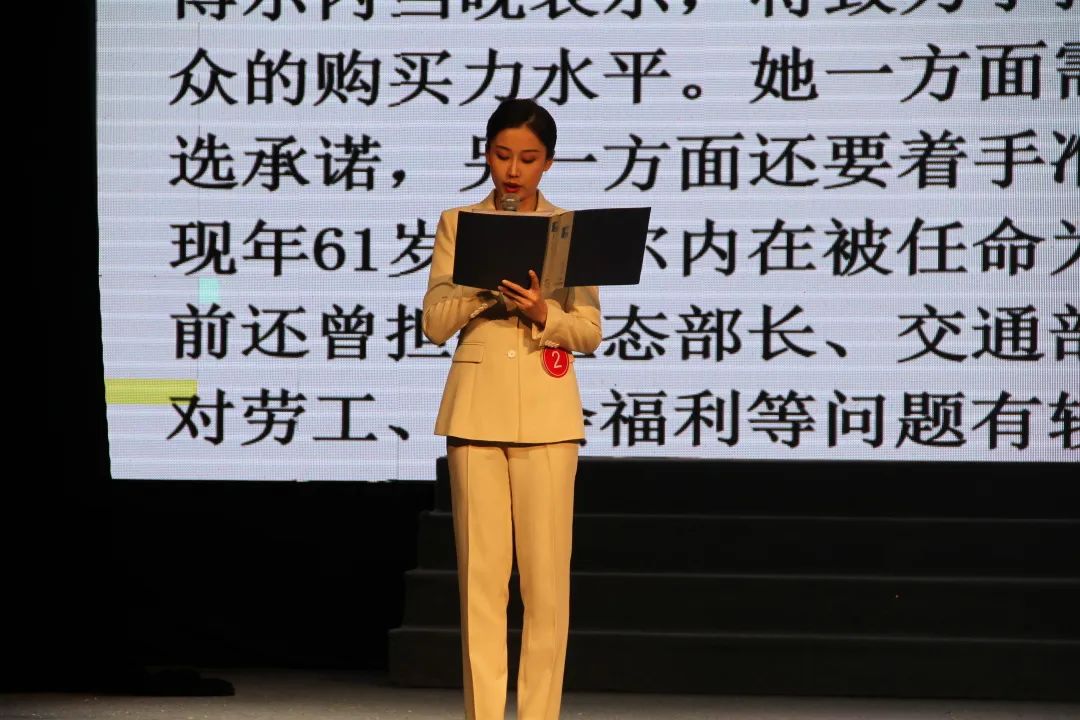 本轮比赛内容为人物通讯舞台播报,选手们通过现场表达与视频展示的结合,生动地诠释了主题人物的故事。本轮比赛将有4名选手进入最终环节。
