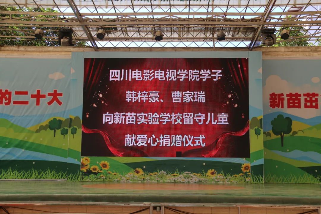 金桂香飘远,爱心暖人间。2022年10月3日,四川电影电视学院播音主持学院的大一学子韩梓豪、曹家瑞走进新苗实验学校,为新苗留守儿童进行爱心捐赠,为新苗的留守儿童送来了书包、作业本,图书、铅笔等学习用品!新苗实验学校党支部书记、校长李修会代表全校师生接受捐赠并对四川电影电视学院两位学子的善举表达衷心感谢,孩子们也纷纷表示,一定不辜负四川电影电视学院两位大哥哥的期望,努力学习,以优异的成绩回报社会。