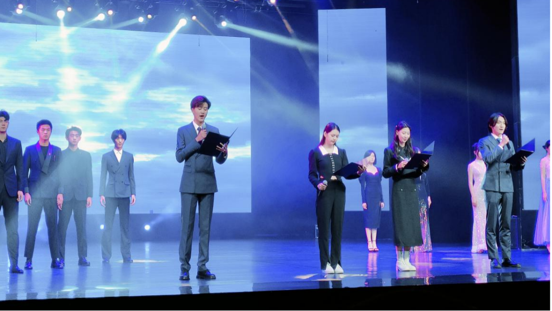 “是的,暴风雨中的雷声特别响/是的,乌云深处的闪电特别亮。”朗诵会的最后,播音主持学院的四名同学朗诵作家艾青所写的《光的赞歌》。赞颂光的美丽,在欢欣中歌唱太阳。一篇篇诗文承载着川影学子对川影的热爱,这是来自三十载的呐喊,这是川影传媒人内心的声音。