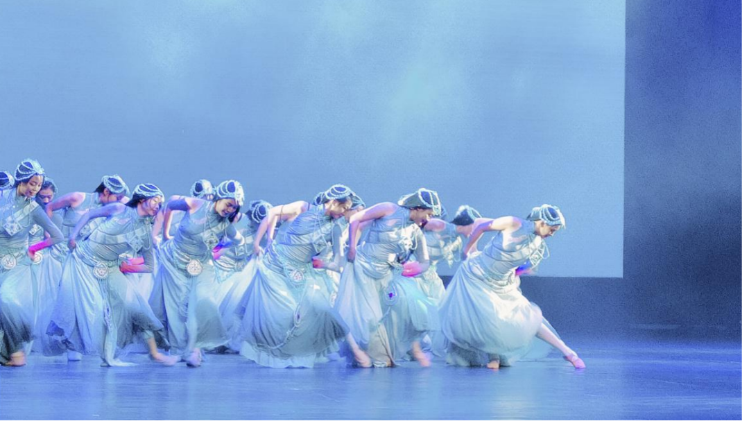 音乐与舞蹈学院的学生用她们曼妙的舞姿讲述了一群藏族少女在纳木错湖边接受天浴洗礼的故事,观众们仿佛置身其中与她们一起梳洗、嬉戏,感受着神灵的庇佑,身心得到纯净、焕然一新。