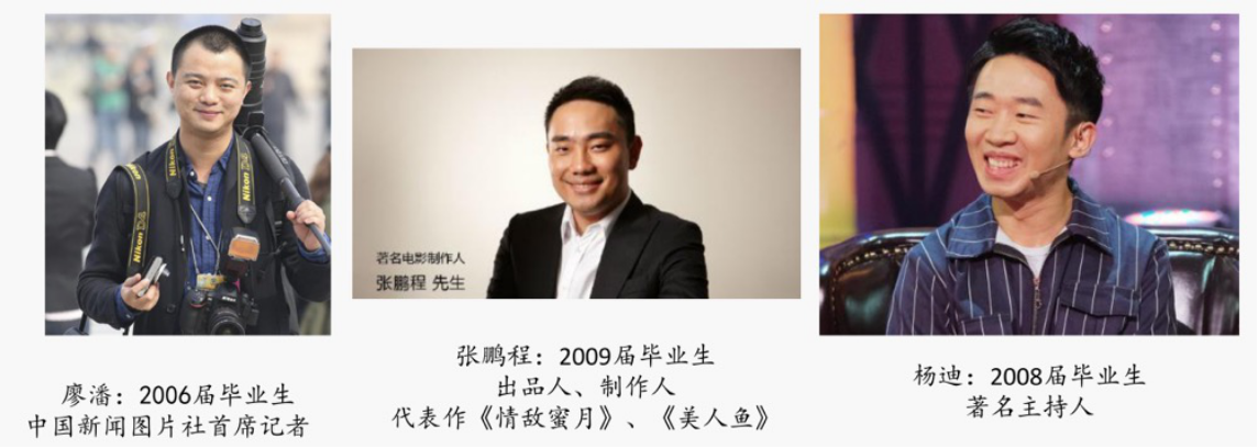 经过23年的积累,视听传媒学院(原电视学院)两专业已经成为西部地区获得专业奖励最多、毕业生得到行业认可度最高的艺术类本科专业之一。学院始终坚持“为党育人,为国育才”的育人宗旨,为中央电视台、凤凰卫视、湖南卫视、中新社等影视传媒机构输送了大量人才,包括《我不是药神》编剧钟伟,著名主持人、喜剧演员杨迪,中新社首席摄影记者廖攀,中央电视台新闻部首席记者关舟,中央电视台导演杨陶好雅,《前任攻略》、《金刚川》制片人周子健,《情敌蜜月》、《美人鱼》出品人张鹏程,阿里巴巴集团运营专家曹林等,为中国的影视、传媒行业做出了突出的贡献。