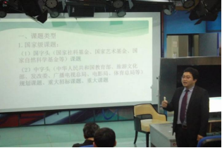 接着,蒲爱民处长感谢苏亚平院长的邀请,充分肯定了电视学院近年来在人才培养、专业建设、师资队伍建设、作品创作和校企合作等诸多方面取得的成绩,同时也希望电视学院进一步探索研究国家一流专业建设指标,进一步加强高水平师资团队建设,进一步加强校内外实践条件建设和校企合作力度,进一步在科研项目申报立项、高水平论文发表、高质量作品创作、专利申报等方面进行突破,同时说明了本次讲座旨在普及如何做好课题申报,解决老师在课题申报中的一些疑问,提升老师尤其是年轻老师在科研工作中的学习意识、问题意识、课题意识以及信息检索、研究方法、文献引用等基础学术素养,进一步提升老师们课题申报能力。