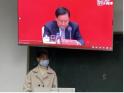 紧接着,王帝老师联系电视学院实际情况,剖析党的十九届六中全会精神,以电视学院韩川老师的事迹作为定点扶贫的例子,讲解党领导下团结合作打赢脱贫攻坚战,实现全面小康的伟大成就,希望大家把全心全意为人民群众服务的意识贯彻到实际行动中去,并能在思政课中学习历史,感悟历史,不忘初心,牢记使命,鼓励同志们结合所学专业,积极创作出符合主旋律的影片。