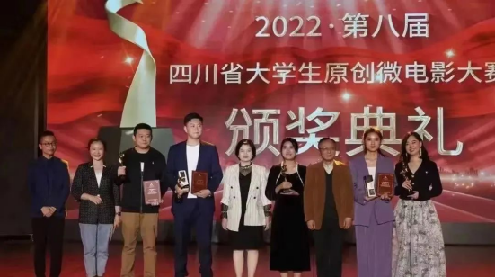 11月8日下午,第八届四川省大学生原创微电影大赛颁奖典礼圆满落幕,川影电视学院在本次比赛中再获佳绩。共有四部学生作品获奖:《细雨淋湿的路上》荣获优秀导演一等奖、优秀剧情片一等奖、优秀摄影奖二等奖、优秀剪辑奖二等奖;《班翅于飞》荣获优秀摄影二等奖、优秀剪辑奖二等奖、优秀表演二等奖、优秀导演三等奖、优秀编剧三等奖、以及优秀剧情片三等奖;《兹莫格尼》荣获优秀纪录片一等奖;《逆光前行》荣获优秀纪录片三等奖。此外,电视学院院长苏亚平、党委副书记刘璐荣获优秀指导教师奖;四川电影电视学院也荣获了主办方颁发的优秀组织奖。