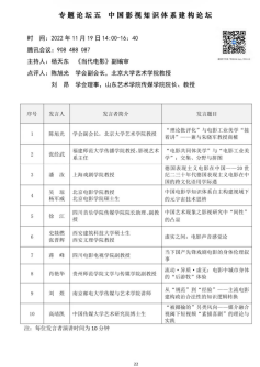 本次中国高校影视学会第十五届中国影视高层论坛分论坛环节共设22个分会场平行论坛(7个专场论坛+15个专题论坛),电视学院副院长刘丽教授、电视学院基础教研室副主任蒋峰副教授、电视学院青年教师苏丹、齐亚楠分别在专场论坛、专题论坛进行发言。