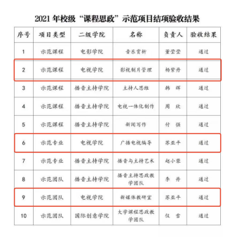根据《四川电影电视学院关于开展2021年校级“课程思政”示范项目结项工作的通知》(川影教〔2022〕49号)要求,学校对2021年立项建设的校级“课程思政”示范项目进行结项验收,经学校初审、学校评审,电视学院3个项目通过验收。