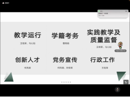 电视学院院长助理毕园对本学期负责的学院教学运行、学籍考务、实践教学与教学质量监督、创新人才班培养、学院宣传及新媒体教研室工作作总结汇报。
