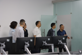为进一步了解川影电视学院实践教学情况,崔刚副部长一行参观了电视学院平面视觉创作实验室、融媒体内容创作实验室、一体化节目制作实验室、2号摄影棚等实践教学场地,观看了各教学场地的实训教学开展情况。