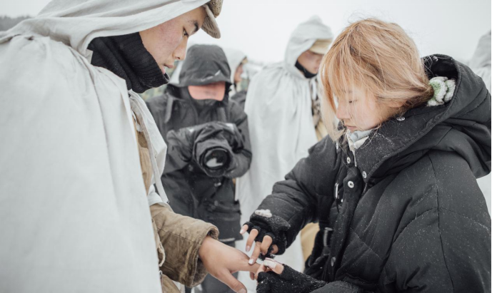 18人设曾驿雯冰雕连战士手部做冻伤效果