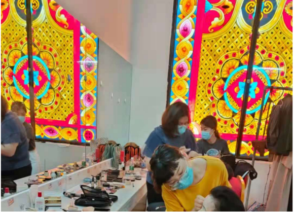 同学们经过这次话剧的演出,对服化行业在剧组的流程和重要性也越来越了解了,大概知道了电影电视和舞台人物的装面的不同之处了,也感觉自己在这次的锻炼中学到了很多有用的知识和一些化妆的技巧,什么样的角色搭配什么样的衣服发型和妆面等等。