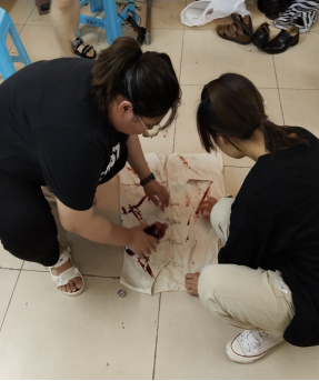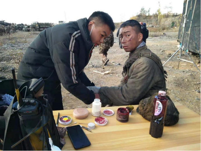 同学们分别在ABC组学习、工作。此次实习,学到了更加丰富、实用的专业知识以剧和历史环境运用化妆手段来帮助演员表现人物在典型环境中的典型特征,这类化妆包含了利用材料来改变演员本人的容貌,使演员老师更加贴近人物原型。也全面了解抗美援朝这段可歌可泣,令人尊崇的历史。