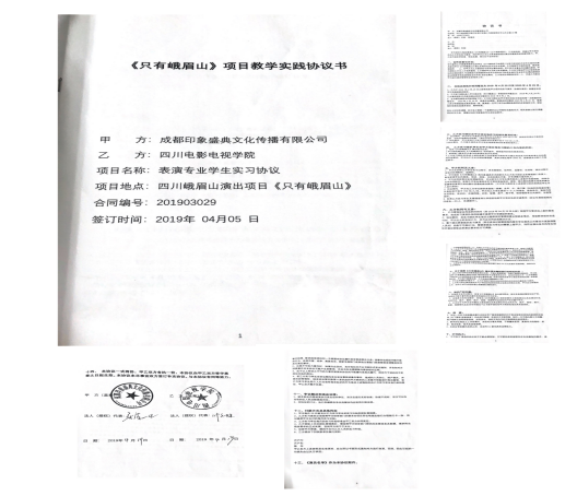 2019年4月5日,我专业与该公司签订《只有峨眉山》项目教学实践协议书,截止到2020-2021学年第一学期,我系派出表演专业2016级、2017级、2018级共计226人次先后前往项目实习实训,担任项目演员工作,自2019年4月开始前期排练创作至2019年9月首演,排练时长超1000小时。9月6日正式演出后,演出场次百余场,接待观众10000余人。