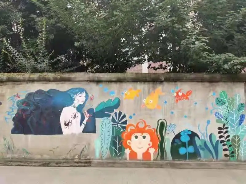 (同学们在附中的墙绘)