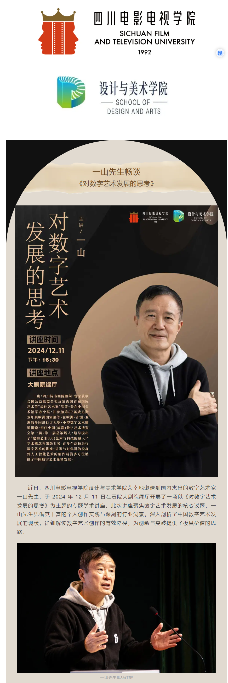 专家讲座▍一山先生畅谈《对数字艺术发展的思考》