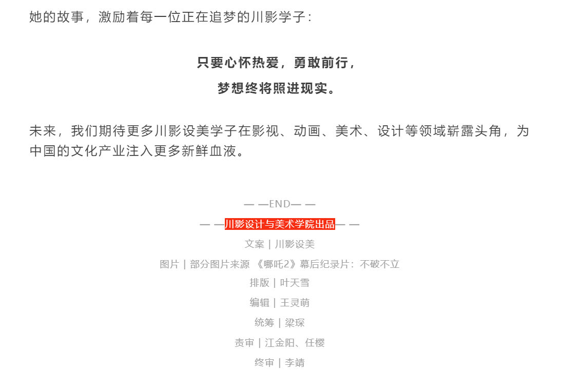 川影设计与美术学院学子张书绫闪耀《哪吒2》美术组!