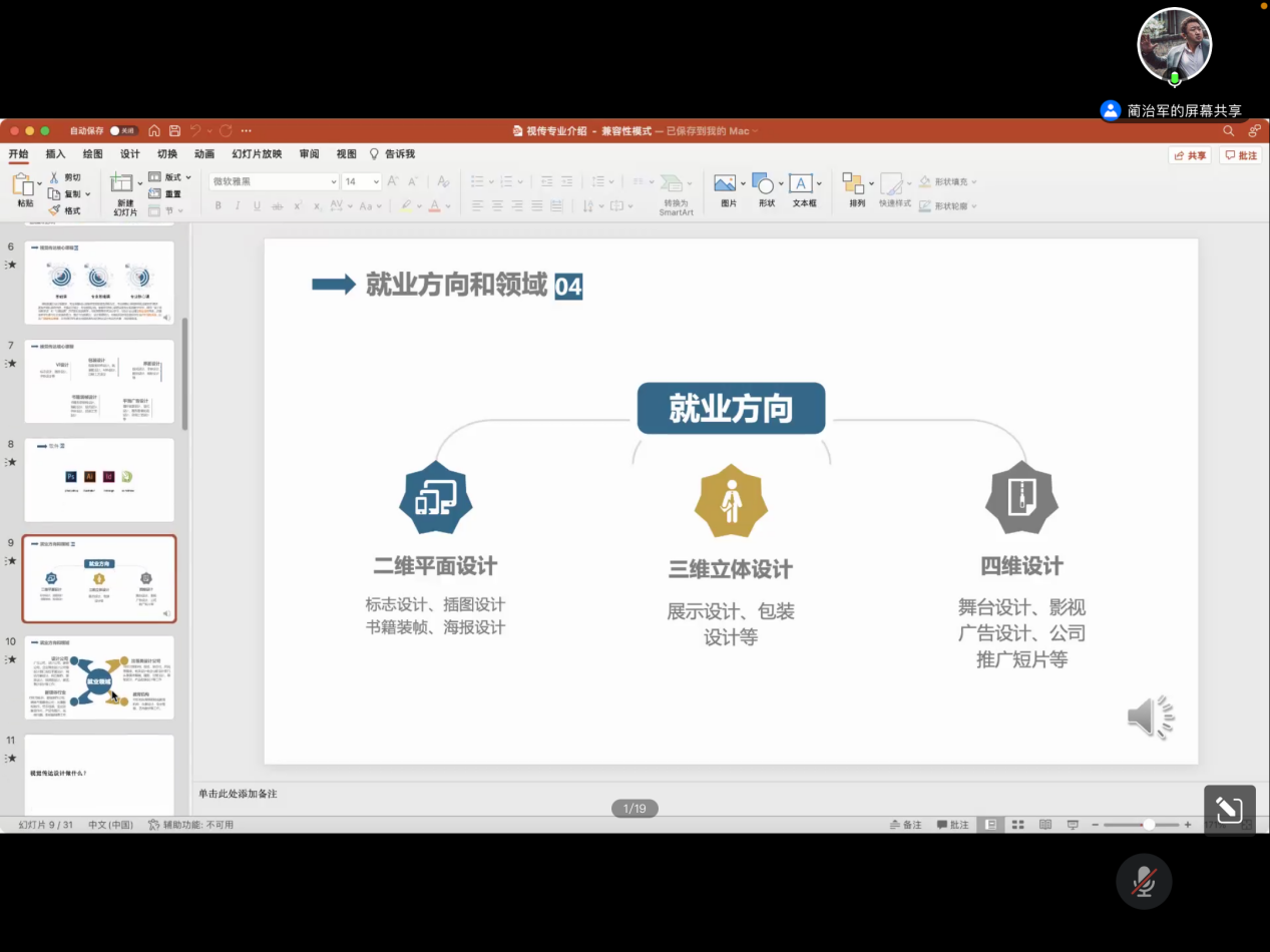 本专业就业面覆盖较广,包括二维平面设计(标志设计、插图设计、书籍装帧、海报设计),三维立体设计(展示设计,包装,设计等),四维设计(舞台设计、影视广告设计、公司推广短片等)。