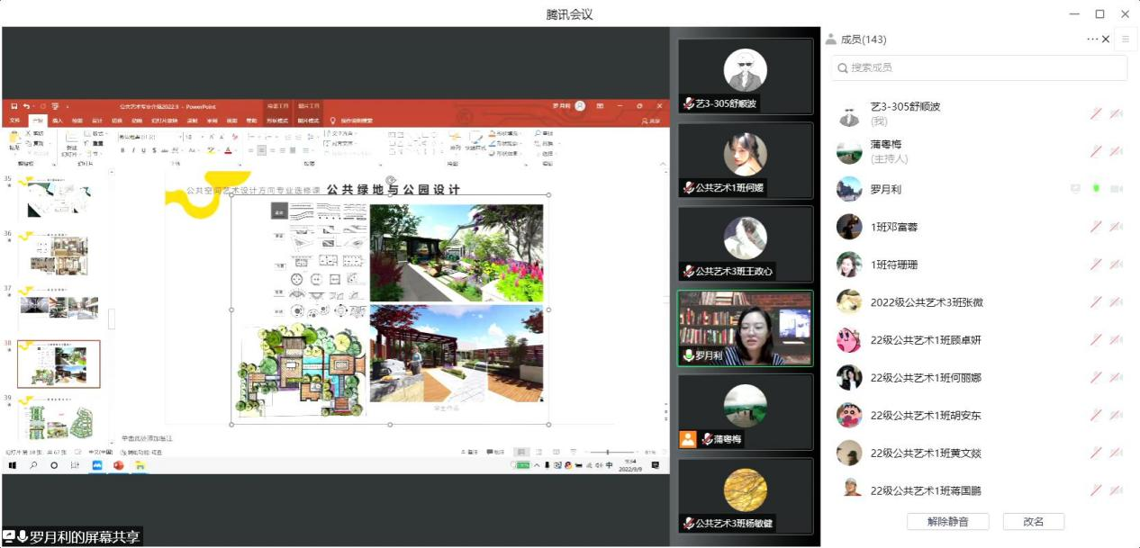 同一时间,蒲粤梅老师主要为同学们介绍了公共艺术设计专业必修课的课程内容,罗月利老师主要为同学们介绍了公共艺术设计专业选修课的课程内容,两位老师均细心讲解了课件内容,除已经准备好了的问题,在最后,蒲老师和罗老师都针对同学们可能出现的问题,进行了针对性解答。