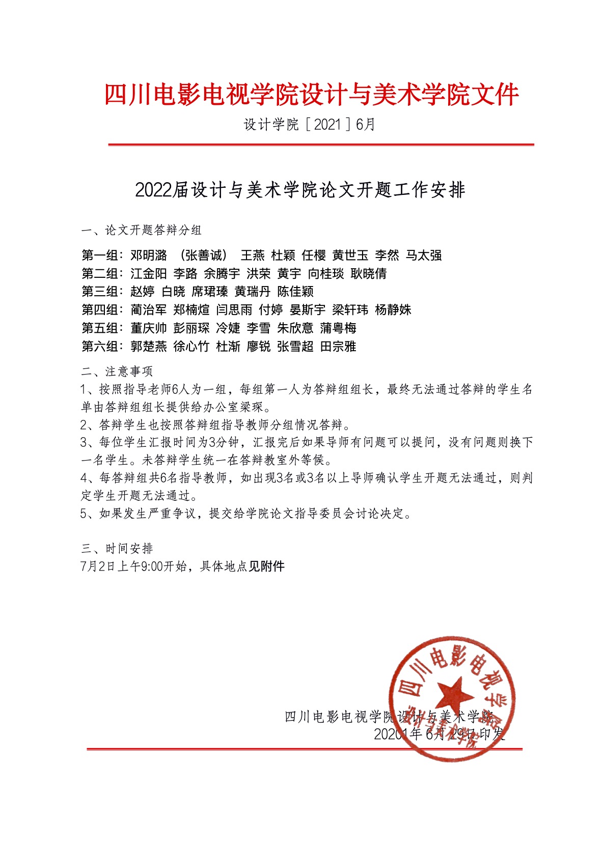2022届论文开题答辩工作通知