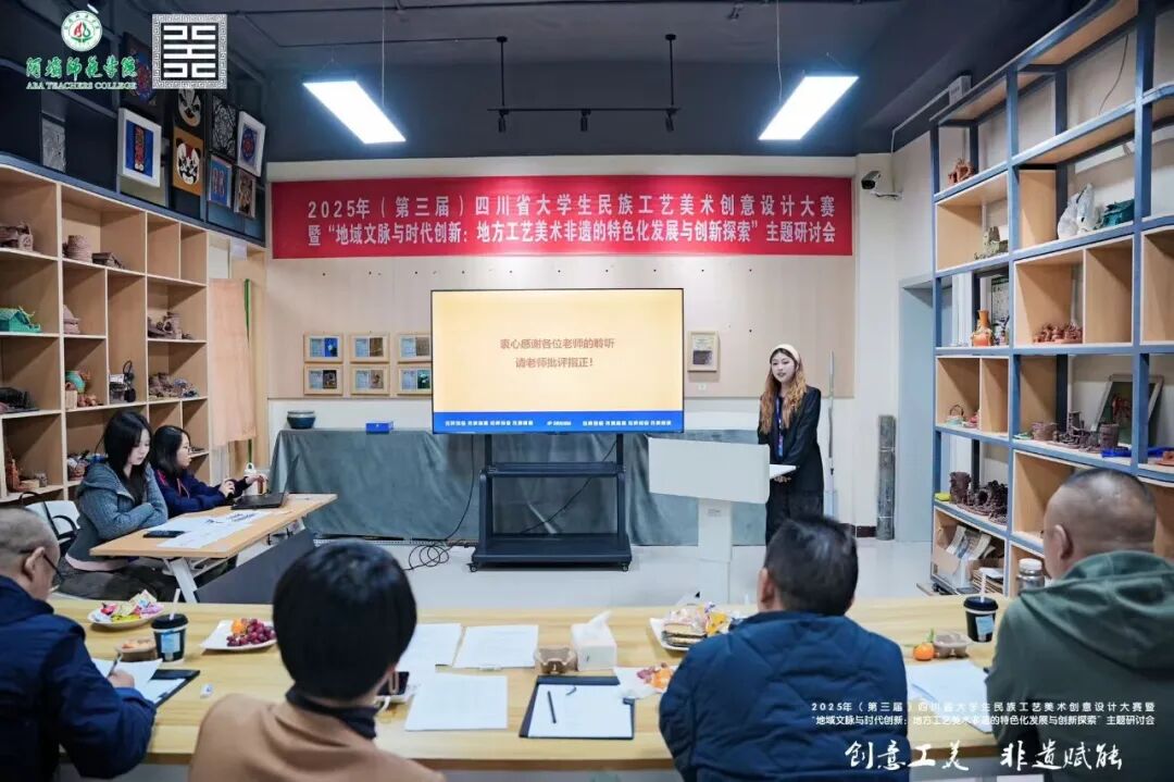 2025 年 10 月 19 日,由四川省教育厅主办、阿坝师范学院与阿坝州文化馆(阿坝州非遗中心)联合承办的“2025 四川省大学生民族工艺美术创意设计大赛”,在阿坝师范学院水墨桃 园 大 剧 场 圆 满 落 幕 。 设 计 与 美 术 学 院 执 行 院 长 李 靖 带 队 参 加 现 场 决 赛 。