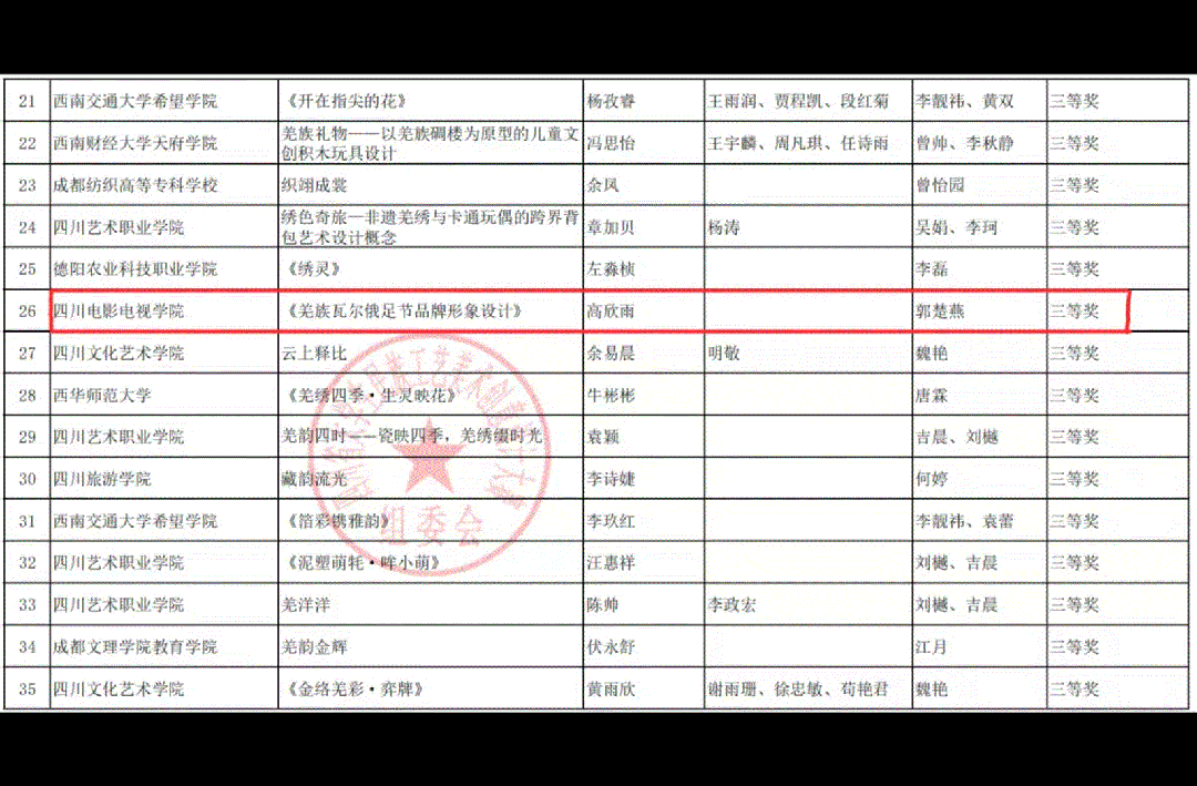 本次大赛以“创意工美 非遗赋能”为主题,吸引全国多所高校师生(含硕士研究生)参与,其中包括西南大学、四川农业大学、四川师范大学、西华大学等知名学府。经过长达四个月的层层遴选,共有 42 所高校入围决赛,1500 多件优秀作品同台竞技。我院学子凭借扎实的专业功底脱颖而出,斩获 47 项等级奖项(一等奖 9 项、二等奖 16 项、三等奖 22 项),学校同时获评“优秀组织奖”。现将大赛获奖名单予以公布: