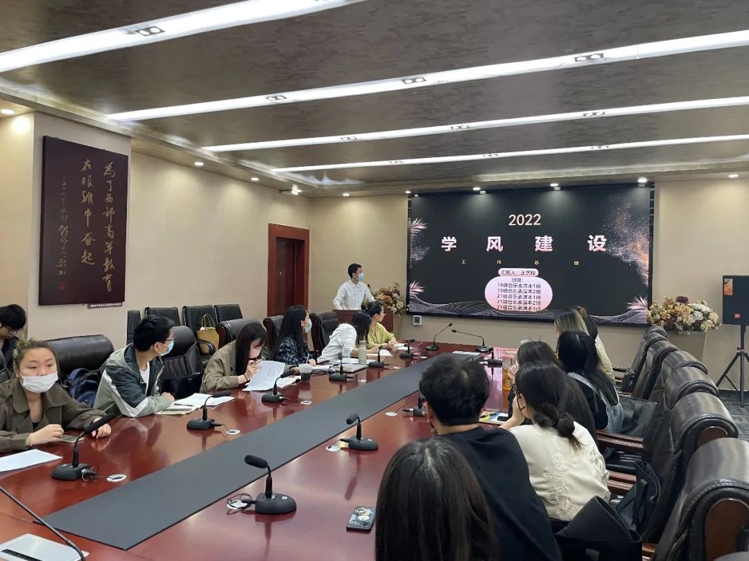 四川电影电视学院音乐舞蹈学院2021—2022学年第二学期学风建设期中汇报于4月25日及5月9日安仁校区贡院二会议室举行。音乐舞蹈学院党委副书记陈一新老师以及音乐舞蹈学院全体辅导员到场参加。