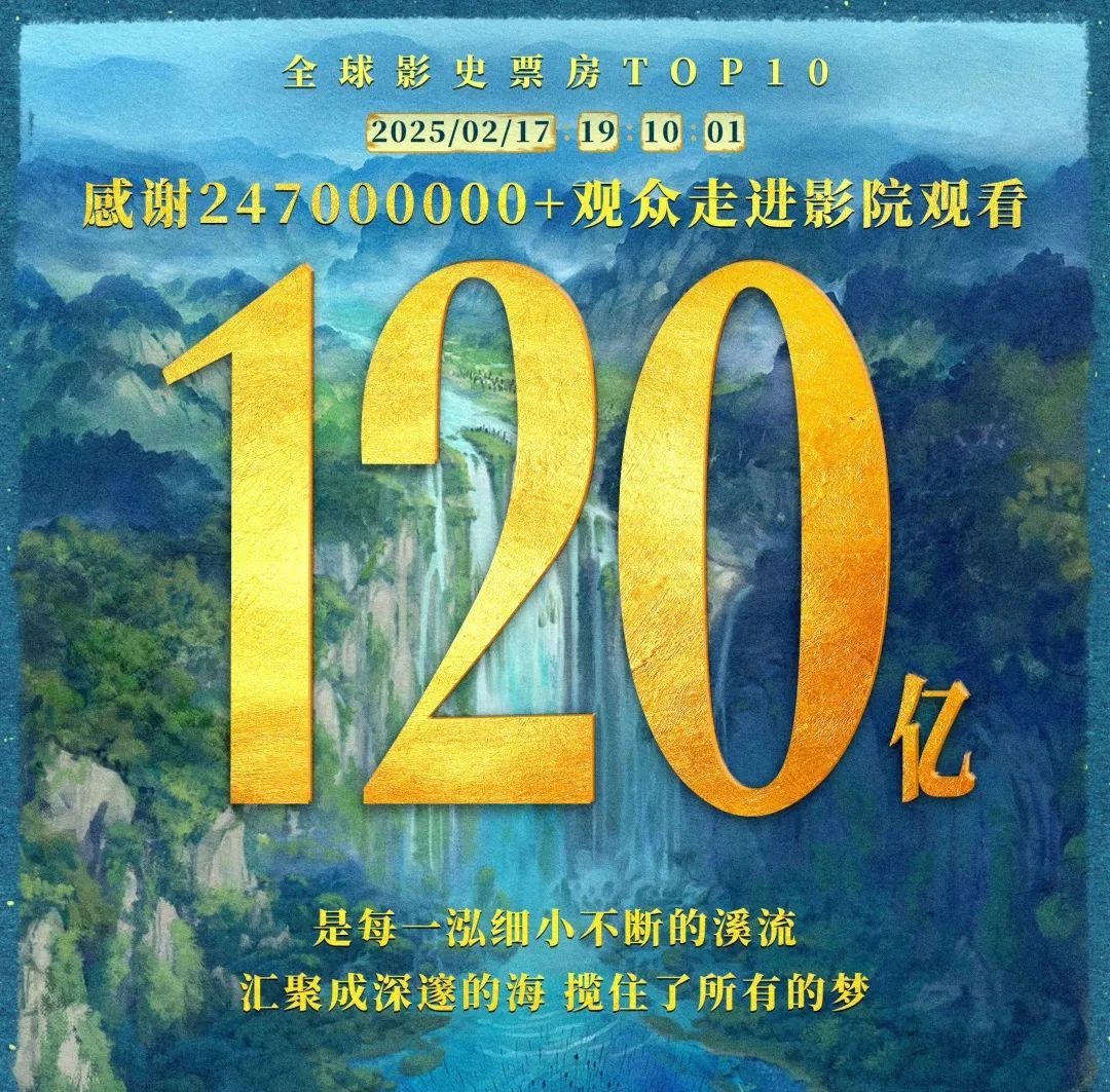 截至目前,《哪吒2》全球票房已突破120亿,哪吒携手敖丙成为首部闯入百亿电影俱乐部的中国电影。未来,我们期待有更多的中国电影一步步往前,走进世界视野。