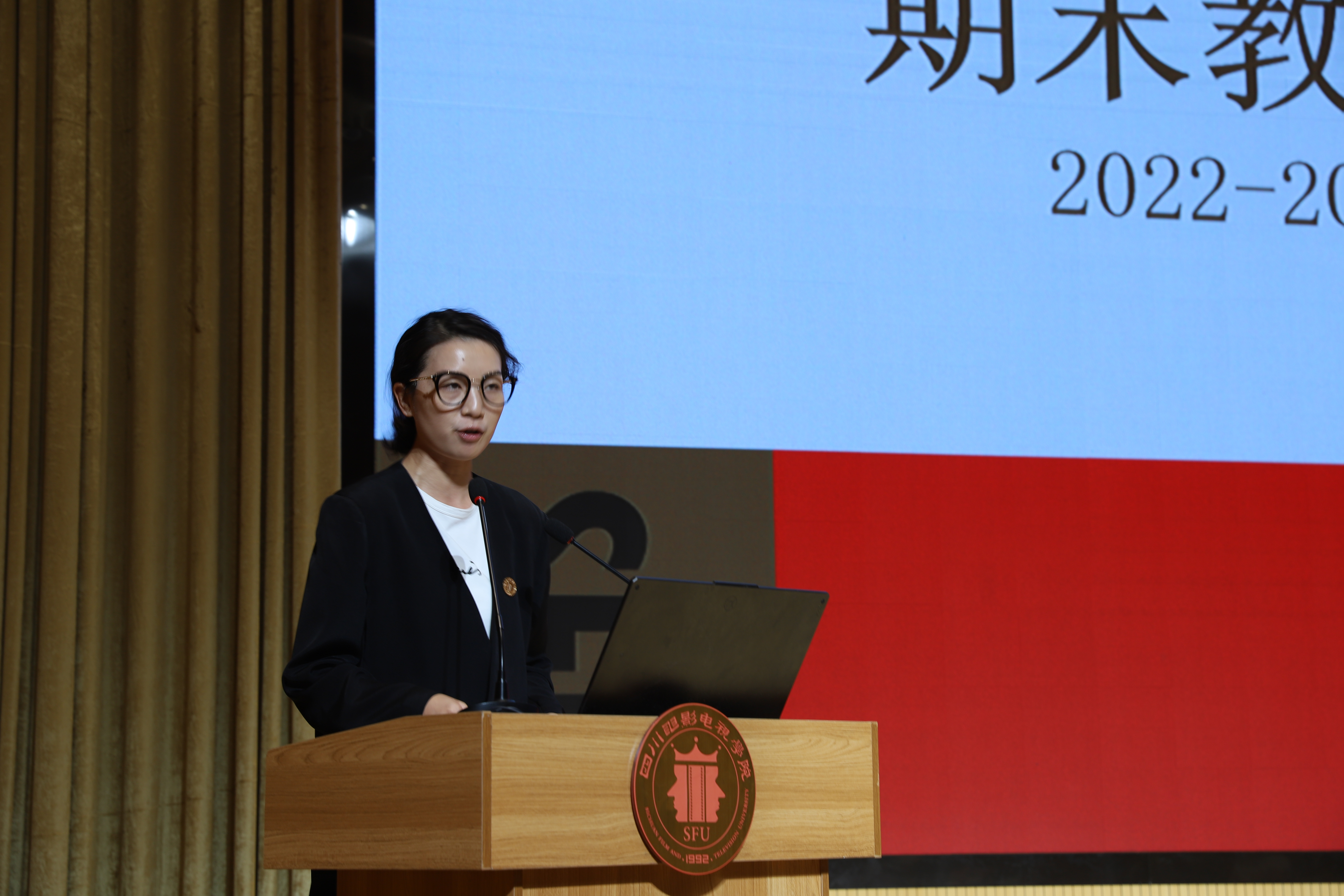2023年7月2日18:30,新媒体学院在安仁校区音乐厅进行2022-2023学年第2学期期末汇报,新媒体学院全体教职工参会。四川电影电视学院校长罗共和、四川电影电视学院党委书记王小林、四川电影电视学院常务副校长李健、四川电影电视学院副校长刘志勤、四川电影电视学院副校长罗思、后勤基建处处长柳运西、科研处处长蒲爱民、社会服务处副主任任光林莅临现场,指导工作。