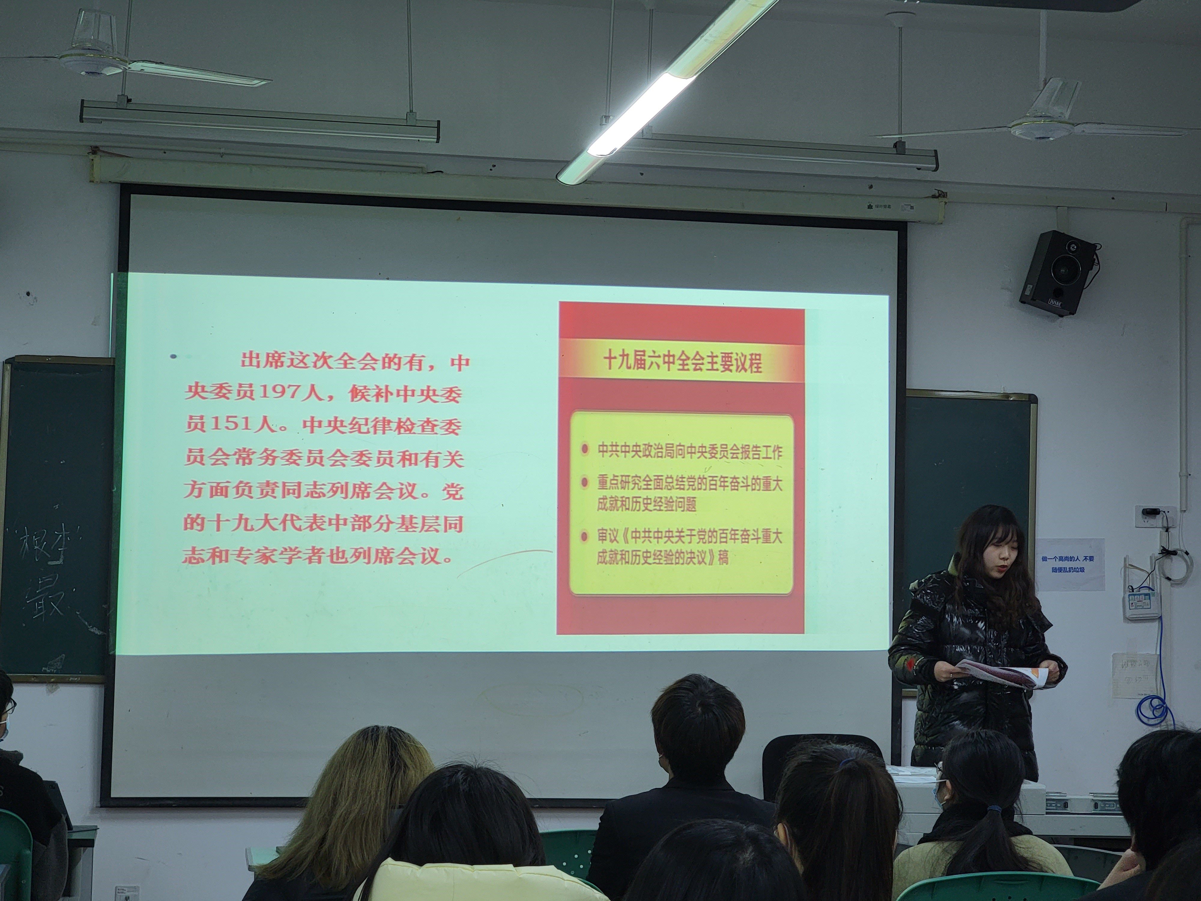2021年12月15日下午19:00,新媒体学院学生党支部于闻院207召开新媒体学院学生党支部2021下半年年预备党员转正大会与学习第十九届六中全会精神学习会议。会议主要讨论是否接收邓又奇等5名同志为中共党员的会议、共同学习第十九届六中全会精神学习会议。