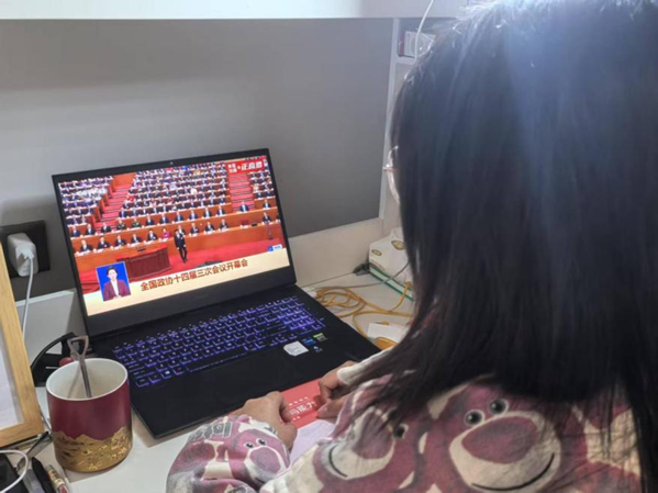 四川电影电视学院国际创意学院师生通过电视、网络等了解全国两会的主要内容,学习两会精神,反响热烈。