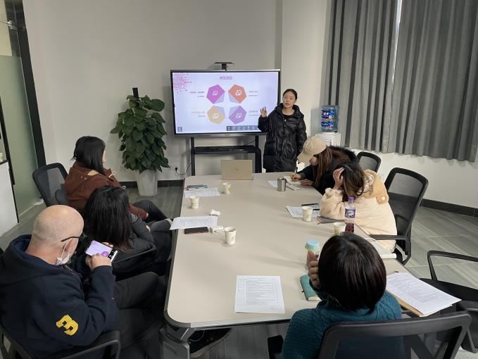 国际创意学院直属党支部书记仪雪老师首先宣布了教职工的期末考个评分占比,并对本学期教学工作与行政管理工作做简要总结,阐述国际项目教学部各项任务的完成情况,对老师们的工作成果表示了充分认可。
