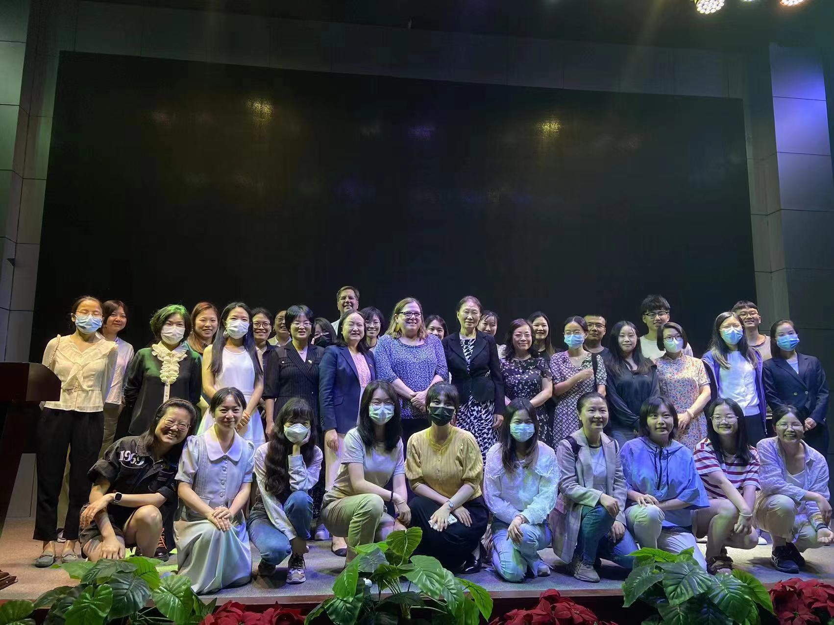 在他演讲完毕后,前任院长滕伟丽教授惊喜现身。她向老师们表示亲切的问候和想念,并祝学院和学校越来越好。彭院长最后总结了今晚的学术交流活动。全体参会人员合影后,大家在满满的收获中离开了蓝厅。