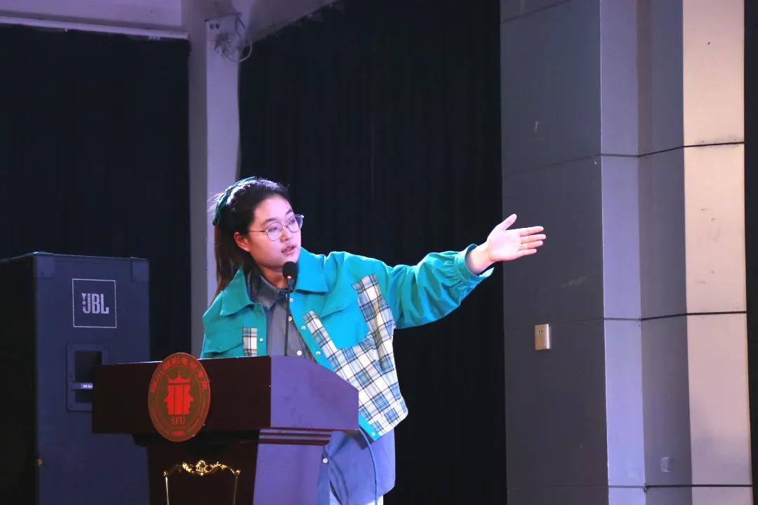 19级主播1班的袁健鸿在才艺展示环节,为动画电影《哪吒之魔童降世》中长生云和太乙真人的角色配音。他表示,如今,播音主持相关行业发展迅猛,在川影优秀毕业生陈浩师哥榜样力量的影响下,逐渐对配音产生了兴趣。通过在校期间的学习,练就扎实的基本功,并参与了菡音阁配音工作室《盗墓笔记》的录制,担任张起灵的角色配音。他希望在工作和学习中不断积累经验,继续向着行业一线奋力前进。