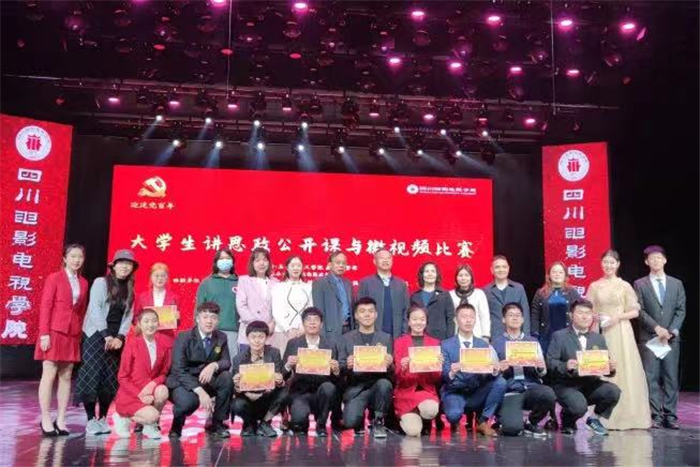 比赛最后,来自戏剧影视导演系的赵海宇同学获得本次比赛的一等奖。我校领导上台为获奖选手分别颁发奖状并合影留念。