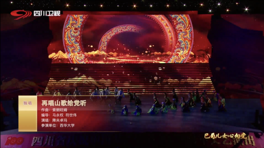 6月25日晚,四川省庆祝中国共产党成立100周年文艺演出——“巴蜀儿女心向党”在四川省体育馆盛大举行。演出由“开天辟地”“火红年代”“春潮激荡”“走向复兴”等主要篇章和序章、尾声组成,2000余名演职人员参加,是四川省近10年来举办规格最高、规模最大的文艺盛会。